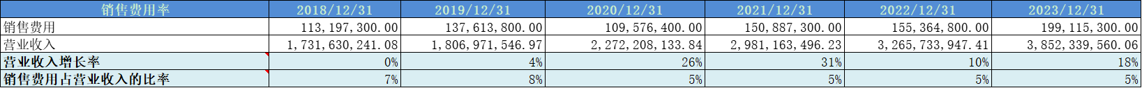 销售费用率占比6%左右,占比很低。