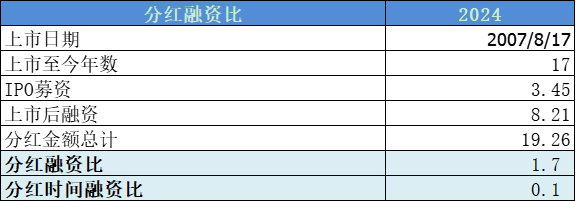 分红融资比非常低,减分。