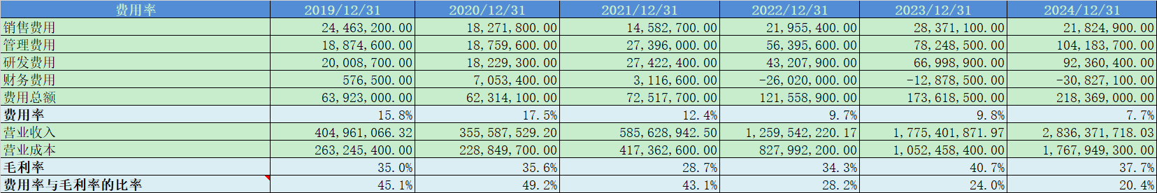 研发费用率稳定在 3.3%-4.7%,2024 年投入 9,236 万元