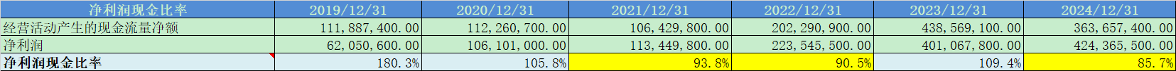 12. 平均净资产收益率20%,2024年为提升到了25%,盈利能力非常强;平均净利润现金比率97%,净利润现金含量较好;现金收入比大于80%,收入质量较好;