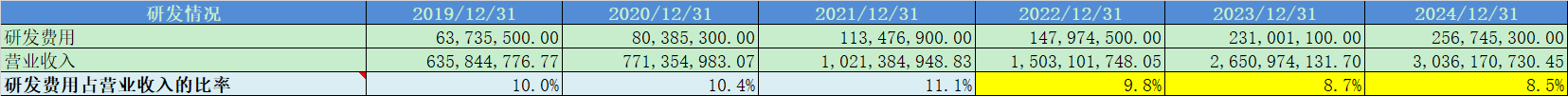 研发费用占比8.5%,占比相对较高;