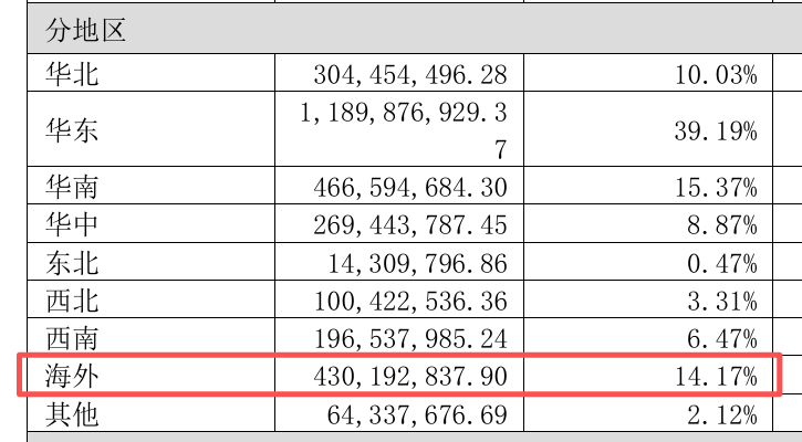 海外收入占比14%,占比不高;