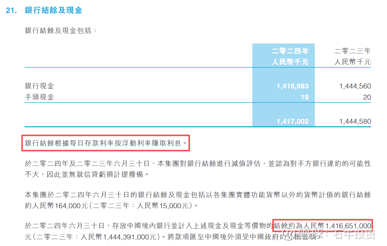2014年开始,公司持续亏损,至今累计亏损5.33亿,但其中折旧与摊销约4.27亿,利息收入约0.457亿。过去11年里,资本开支也少,另外还有些资产处理收入。公司也基本没有现金亏损。所以账户上的现金也没有基本上没有减少。到2024H1,账户仍存有现金14.41亿。这个现金从历年的年报中,可以看出,是主要存在国内的中国工商银行和中国建设银行。