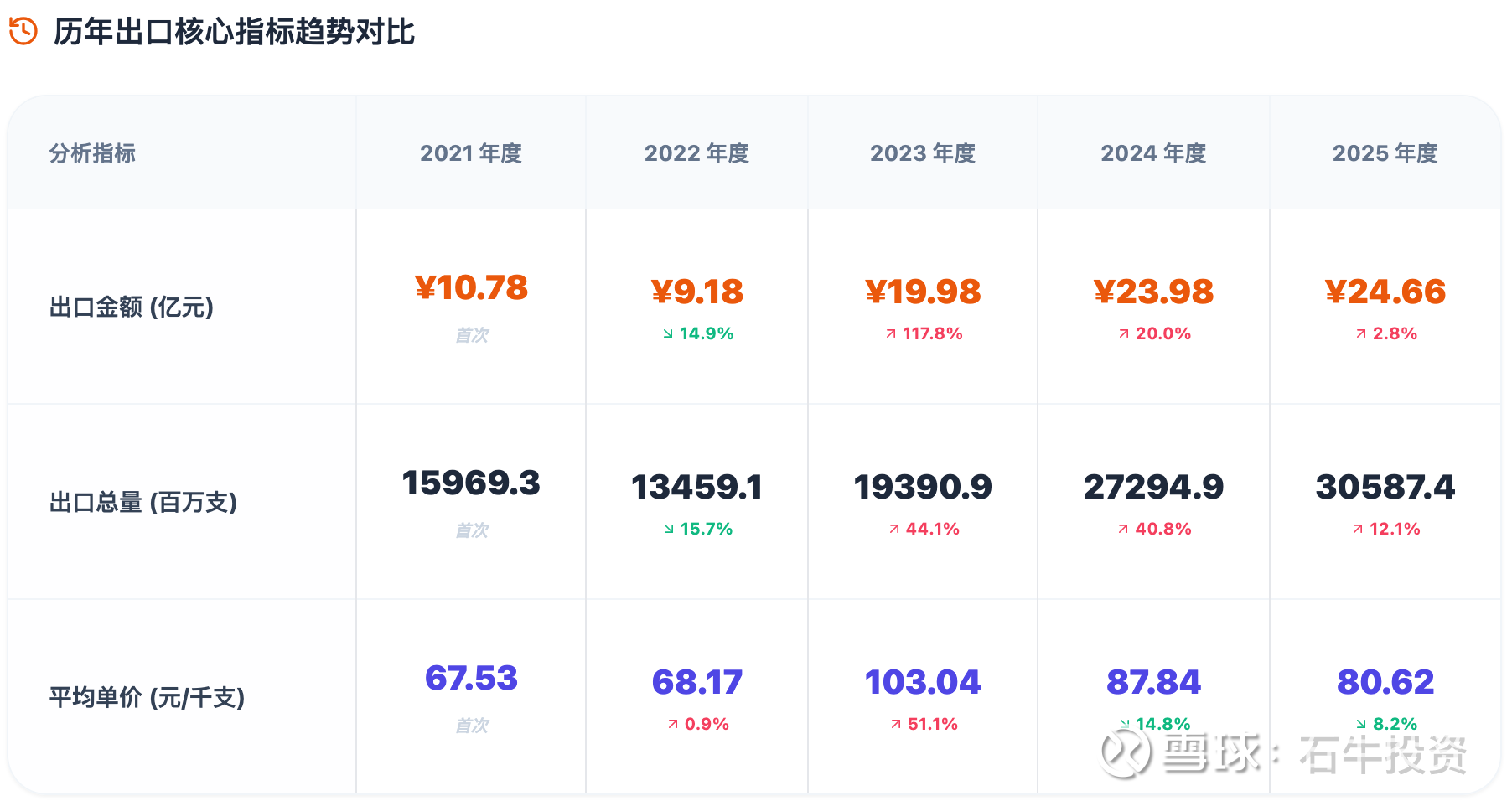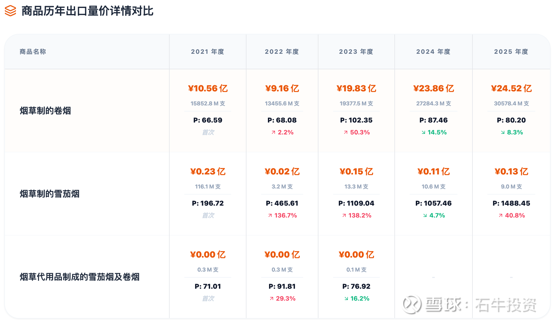 1、2021-2025年出口金额趋势:2025年同比2024年增长2.8%。结合2025年中报毛利率的大幅度提升到25%,卷烟出口业务估计利润同比增长20%以上。