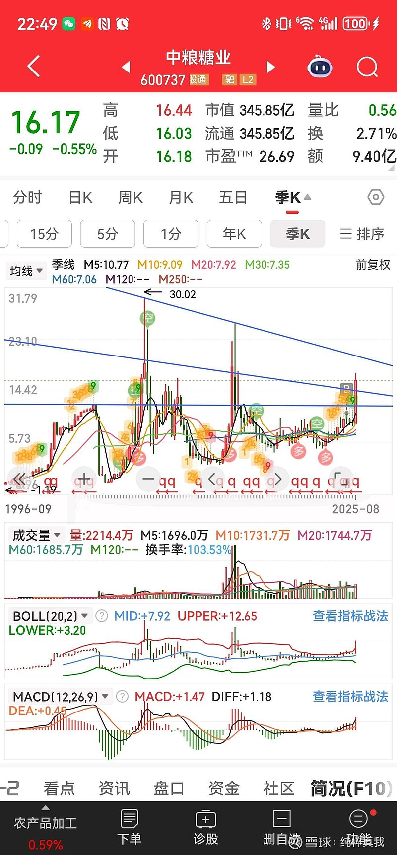 $中粮糖业(SH600737)$