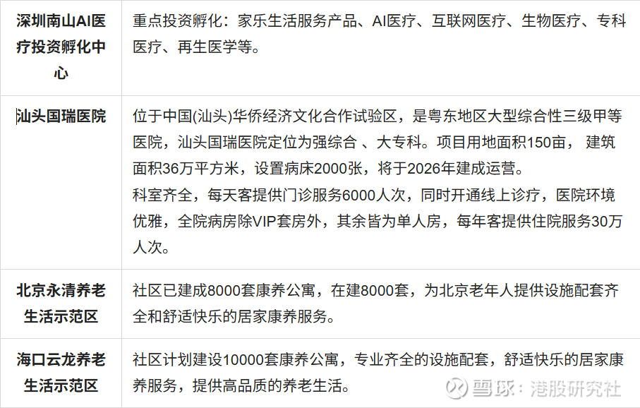 目前国瑞健康在社区康养领域已经取得明显的进展,建设有北京永清和海口云龙两大养老生活示范区。其中永清养老生活社区已建成8000套康养公寓,在建8000套。为北京老年人提供设施配套齐全和舒适快乐的居家康养服务。而海口云龙养老生活社区则计划建成10000套康养公寓,专业齐全的设施配套,舒适快乐的居家康养服务,提供高质量的养老生活。