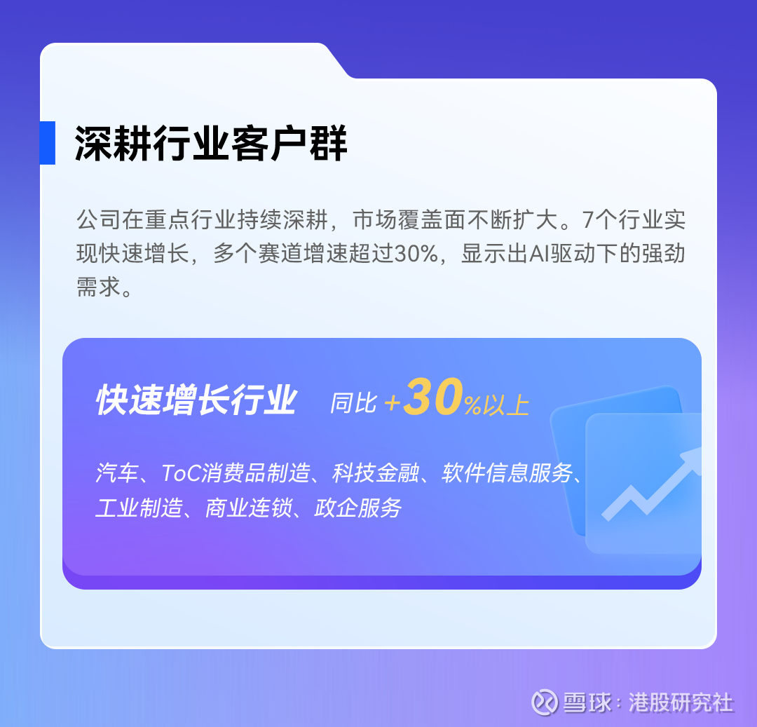 今年上半年,天润云在包括消费品制造、商业连锁、汽车、工业制造、科技金融以及政企服务在内的七个重点行业实现了超30%的强劲增长。这再次印证了我们与各行业客户建立的深厚信任与长期合作关系。