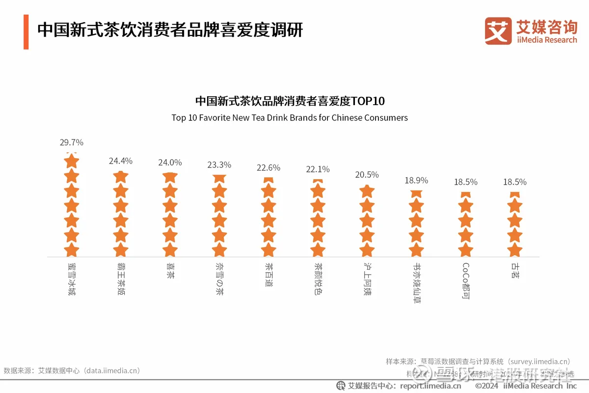 从品牌影响力看,艾媒咨询调研显示,消费者最爱品牌中蜜雪冰城(29.7%)、霸王茶姬(24.4%)、喜茶(24.0%)位居前三,沪上阿姨仅占20.5%,处于中游。