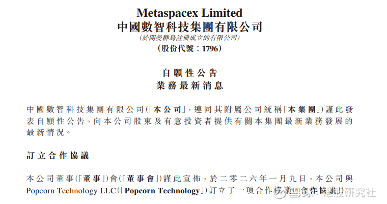 就在最近两个月内,中国数智科技集团(MetaSpaceX)先后与新华医药(中医药与大健康)、广州星伦(工业物联网)、三主粮集团(农业)、Popcorn Technology(区块链与数字金融)等多家企业签署战略合作协议,覆盖医药、工业、农业到数字金融多个领域。再往前看,去年年中,公司还与壹点数智达成合作,切入人工智能数智餐饮赛道。$中国数智科技(01796)$