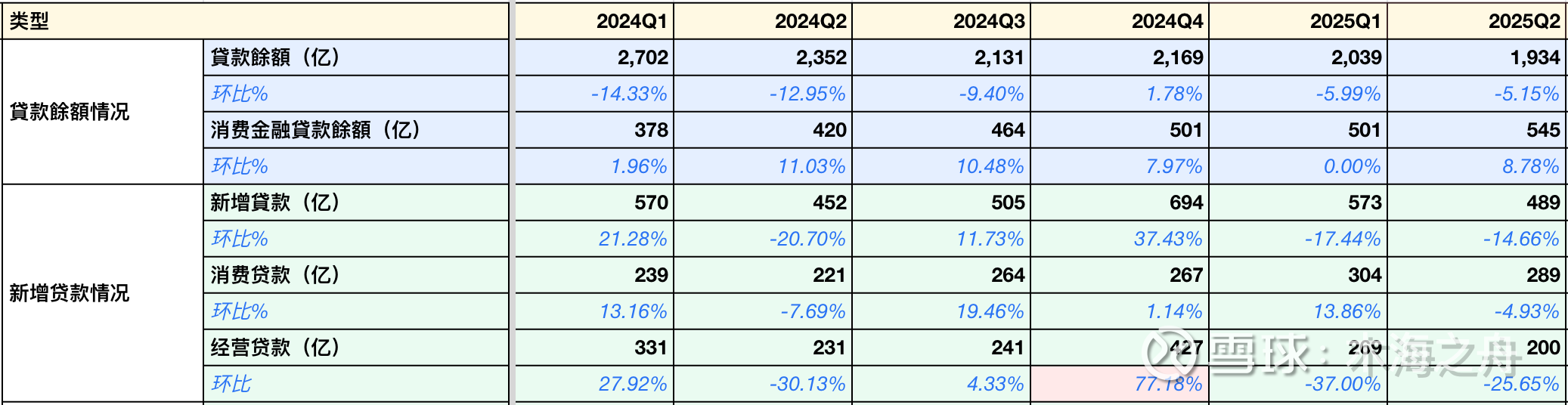 *备注:24Q4经营贷因利好政策,小微企业主贷款需求增加,导致新增经营贷款上升。25Q1经营贷回归正常200亿+水平,25Q2因关税,小微企业不敢盲目扩展,经营贷明显下降。消费贷受宏观经济影响更小,整体趋势稳步上升