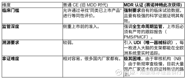 旧规 (MDD):全称《医疗器械指令》。只要产品安全稳定,部分风险不高的产品甚至可以“自宣告”或通过较简单的临床评价获证。