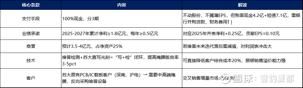 【一句话:先看结论】$苏大维格(SZ300331)$ 公司正从“微纳光学膜”隐形冠军升级为“半导体上游关键设备+材料”双轮驱动的稀缺平台,短期看收购维普带来的EPS增厚+估值切换,中期看掩膜检测国产替代空间,长期看直写光刻在Chiplet/光伏铜电镀的二次膨胀。市值<90亿,对标同行芯源微、中科飞测PS 15-20X,苏大维格仅4.5X,具备“戴维斯”启蒙条件,但现金收购+高商誉是双刃剑,需盯紧落地节奏。