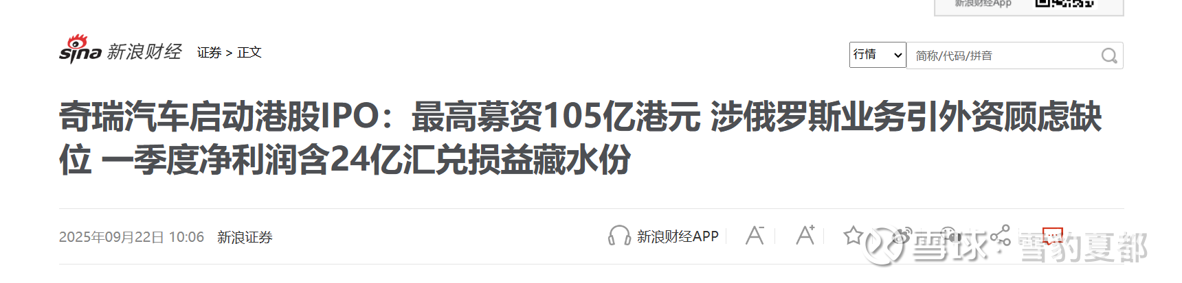 解析:奇瑞2025年上半年销量达110万辆,新能源占比突破40%。$中山公用(SZ000685)$ 公司新能源产业基金出资 2.07 亿元持有奇瑞 4.8974% 股份,奇瑞 9 月 25 日港股挂牌,募资 117-156 亿港元投向智能驾驶研发。按 1400 亿港元估值测算,该部分股权增值空间显著。