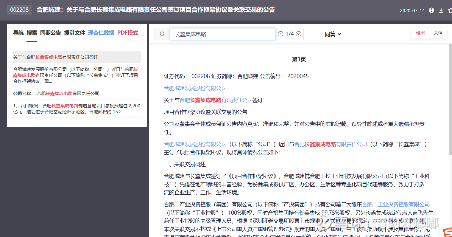 小结:合肥城建在存储芯片产业布局方面动作频频。从股权关联来看,母公司合肥建投持有长鑫科技 21.67% 股权,为第一大股东。并且公司全资子公司合肥工投工业科技发展有限公司实缴 4000 万元参与了合肥市国联资本创新投资基金合伙企业(有限合伙),该基金又通过产投壹号基金投资长鑫科技集团股份有限公司 4.5 亿元。这种股权层面的布局,使得合肥城建与长鑫科技紧密相连,而长鑫科技作为存储芯片领域的重要企业,无疑为合肥城建打开了通往存储芯片产业的大门。
