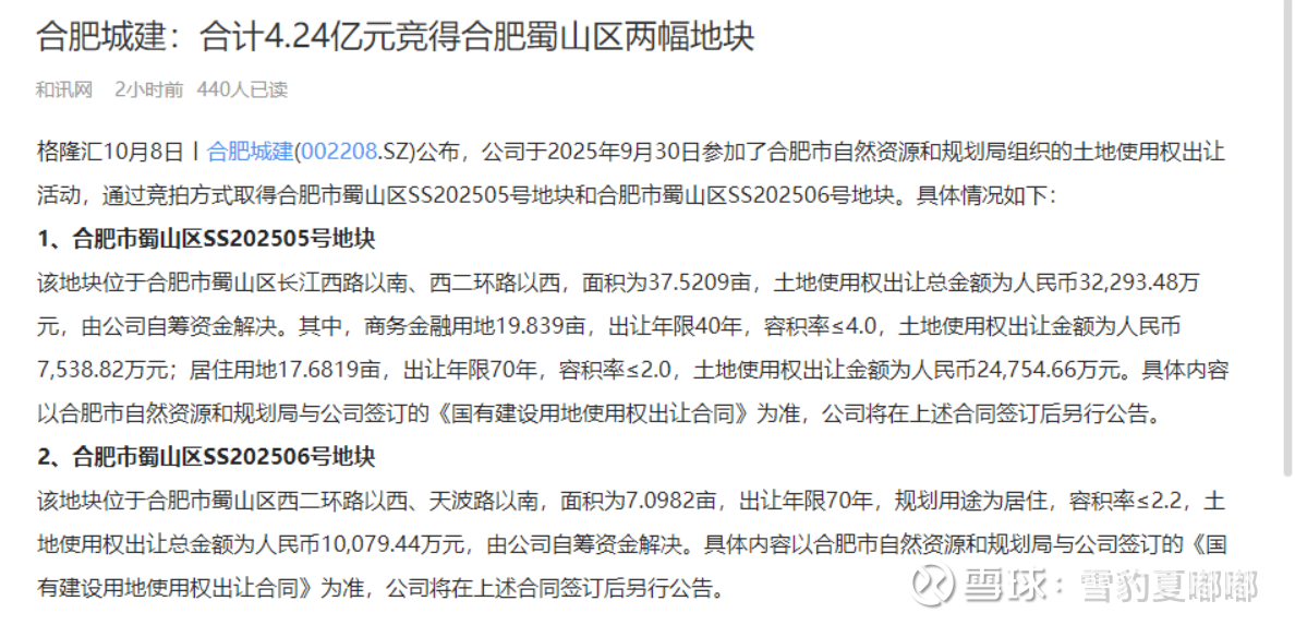 2025年10月,公司竞得蜀山区两宗地块,其中SS202505号地块包含19.839亩商务金融用地,地处合肥半导体产业集群核心区。可规划为存储芯片产业链配套园区。这种“土地+产业”的联动模式,类似于大众公用通过参股基金布局半导体设备领域,但合肥城建更侧重于产业链中游的制造环节。母公司合肥建投曾为长鑫科技提供厂房与基建配套,合肥城建作为本地一级资质房企,有望承接长鑫上下游企业的工业地产、人才住宅需求,实现 “产业投资 - 地产开发” 联动。