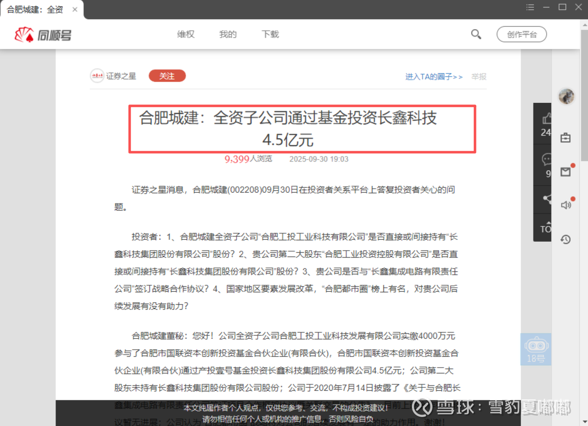 在AI引发的存储芯片超级周期中,合肥城建通过“国资信用+产业资源+土地空间”的三重优势,构建了其他参股企业难以复制的竞争壁垒。其价值重估不仅依赖于长鑫科技的上市进程,更取决于能否将存储芯片产业链的集聚效应转化为城市智能化转型的持久动力。相较于太极实业$太极实业(SH600667)$ 为代表的工程服务模式与大众公用$大众公用(SH600635)$ 为代表的财务投资策略(创投),合肥城建则通过“代建+股权+土地”三维绑定长鑫科技,形成从制造到应用场景的闭环,其估值隐含的存储芯片资产重估空间更大!