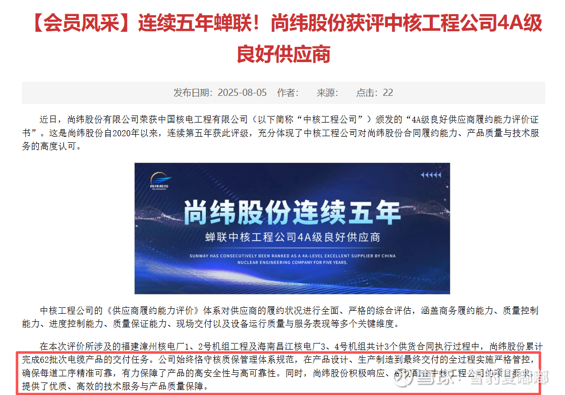总结:展望未来,虽短期经营承压,但尚纬股份凭借核电特种电缆领域的技术底蕴与产能提速潜力,已筑牢发展根基。