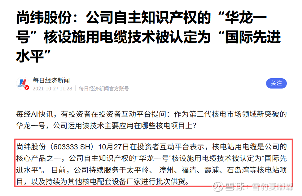 先说结论:尚纬股份$尚纬股份(SH603333)$ 作为核电特种电缆领域的"隐形冠军",技术实力雄厚,产能释放有望提速。控股股东变更为福华化学后,公司不仅获得实力雄厚的实控人支持,更明确切入电子化学品赛道,10万吨/年液态六氟磷酸锂项目打开成长空间。虽然短期经营承压,但"电缆+新材料"双轮驱动格局初步形成,公司的跨界转型举措也具有前瞻性和战略眼光,有望为公司开辟新的利润增长点。
