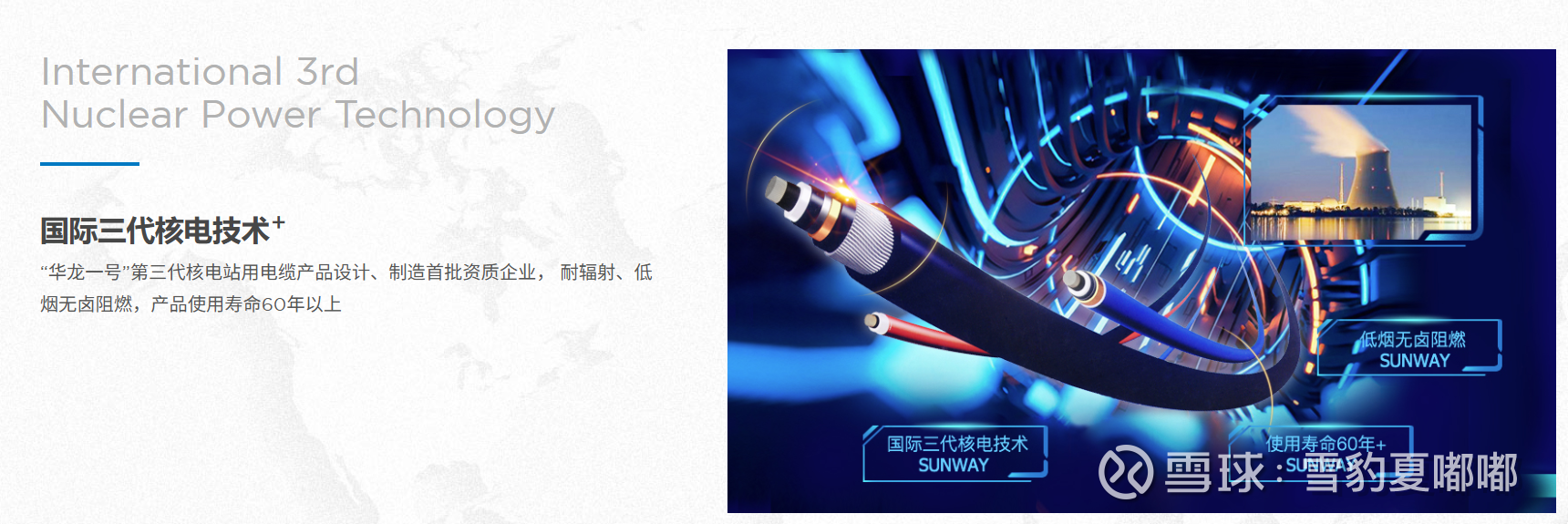 核心资质与认可:连续多年被中广核评为“四星供应商”,被中国核电工程评为“4A级供应商”获177项国家专利,参与制定48项国家及行业标准核级电缆在耐辐射、耐高温等关键指标上达到国际先进水平,符合核电站60年安全运行标准自主研发的稳压器电加热器耐高温电缆成功突破“卡脖子”难题,达到国内领先水平公司产品已广泛应用于“华龙一号”福清核电、石岛湾高温气冷堆、漳州核电等多个国家重大项目。
