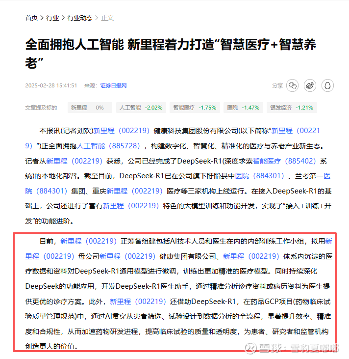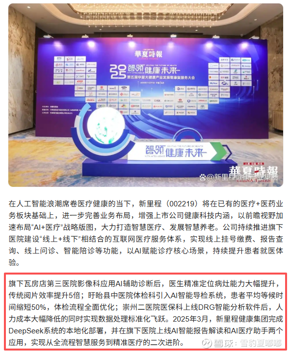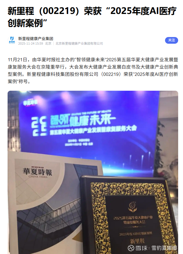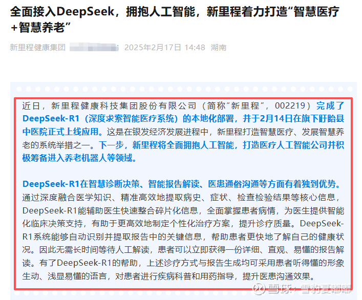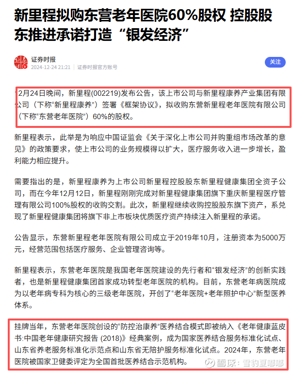 先说结论:新里程$新里程(SZ002219)$ 正处于"AI赋能医疗+医养结合创新+控股股东资产注入+中医药独家品种"的四重驱动周期。公司明确战略定位为"致力于成为银发经济第一股",通过"老年医院+老年照护中心"创新医养模式深度布局老龄化赛道,同时全面接入DeepSeek大模型实现智慧医疗转型升级。