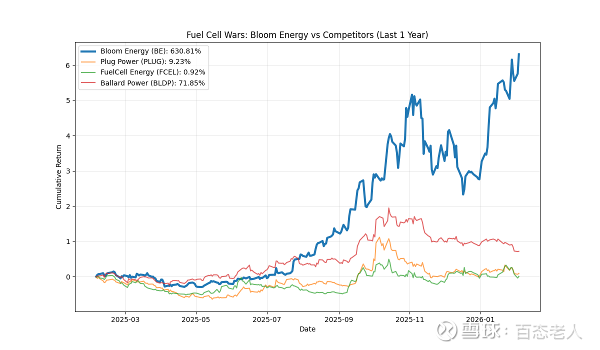 结论:在全球 SOFC 赛道上,Bloom Energy 是目前唯一能吃到"AI 算力红利"的纯血标的。其 +630% 的涨幅并非泡沫,而是全球资本对其"唯一性"的定价。