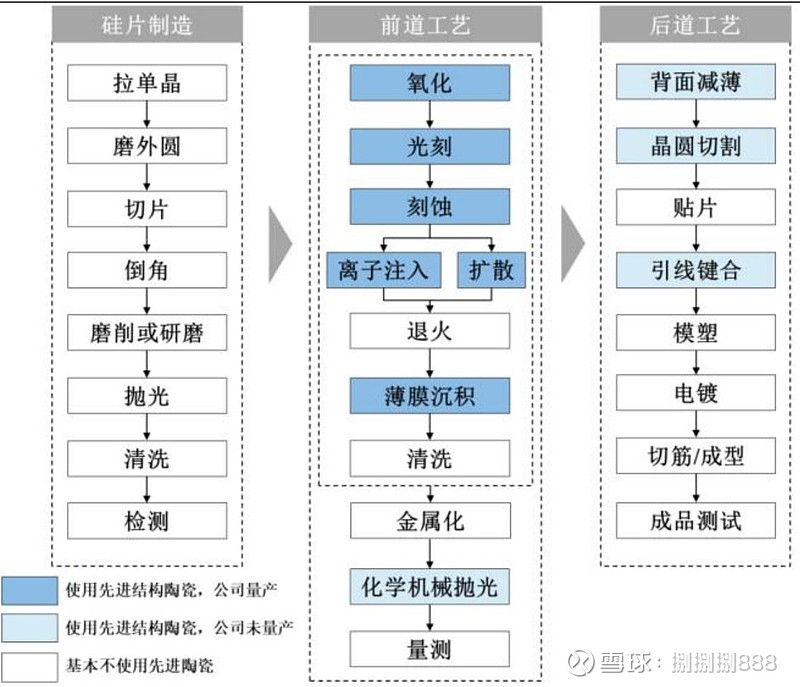 [图示] 先进陶瓷在硅片制造、前道、后道多环节应用,是先进制程的重要材料基础