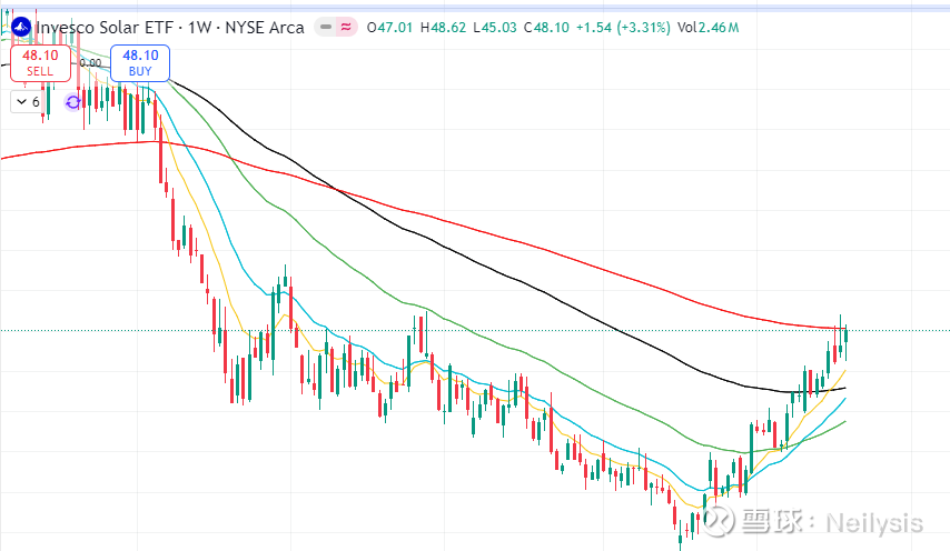 美股光伏板块(TAN光伏ETF)五月以来底部已经翻倍,背后不是一条消息推动,而是几个齿轮一起啮合:组件价格打到地板,电站IRR抬上来→工程端订单回暖;逆变器渠道去库存基本完成,环比数据开始好看;美国本土化与税抵免的口径更清晰,估值折价在收敛;同时利率见顶预期+用电需求上修(AI数据中心是关键增量)把中长期空间又打开。龙头公司在财报里给出了订单/积压/毛利的“硬证据”,资金从防守转回进攻,空头回补+ETF申购再添一把火。简单讲,这波是项目收益率恢复 + 政策明朗 + 资金回流的三重共振——工程侧先热,制造侧跟着修复,情绪和业绩互相抬。