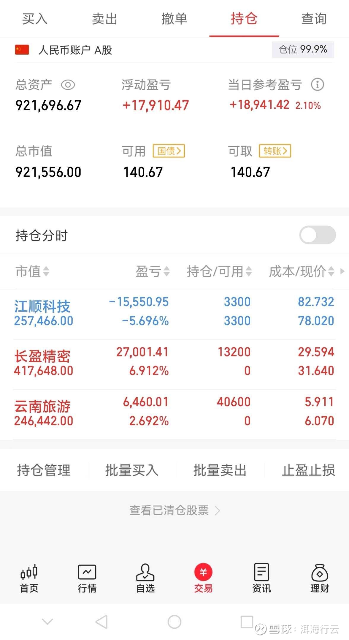 持仓情况:长盈精密,云南旅游,江顺科技。每次卖完就大涨,江顺科技拿一下,看能否破除魔咒,明天再看。