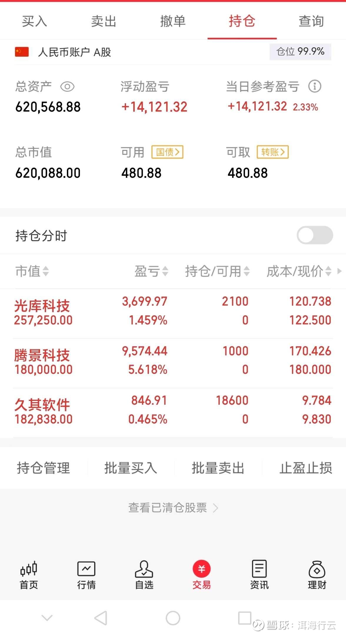 持仓情况:光库科技,久其软件,腾景科技。光库科技早上均线附近吸了,久其软件午后扫了,蓝色光标这股是有大资金运作啊,拿着这股可以完美避坑,可惜了。腾景科技上周五尾盘想买回的,今天尾盘关注了。