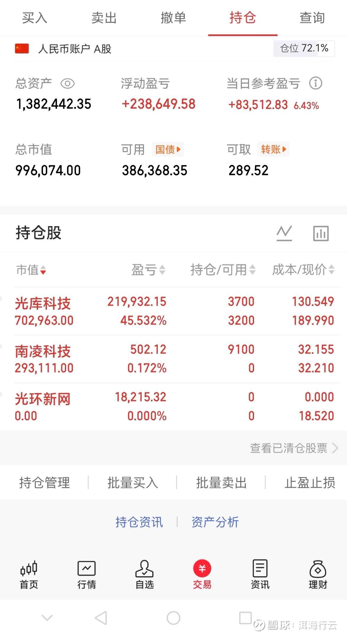 持股:光库科技,南陵科技。光库科技做t持有。光环新网冲高取关,深水低吸了岭南科技。sd概念从炒作ai漫剧影视,其实最终还是对算力的需求。无论是算力租赁还是光模块都是ai算力大爆发的受益方向。手里握着都是科技算力相关。盘面节前氛围浓厚,明天最后一个交易日,该取钱的也卖的差不多了,持股过节。二月行情维持震荡格局,等待主升浪。持股仅作为模拟操作,不作为投资依据。