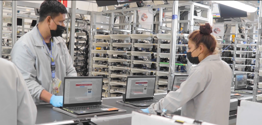 联想集团墨西哥制造基地产品测试区域。