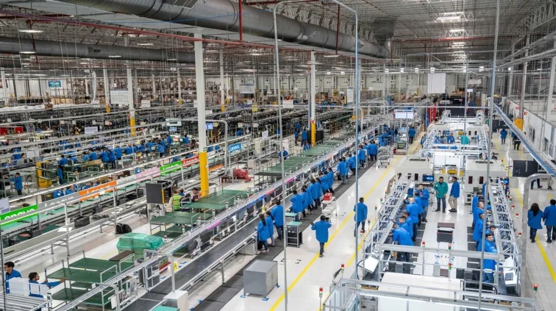 联想集团墨西哥制造基地位于蒙特雷,于2008年建成,拥有两座主体厂房,占地约4万平方米。它从全球2000多家供应商采购材料,生产台式机、笔记本和服务器等超过5.2万个品类,产品远销全球80多个市场。这一基地扎根当地近20年,期间联想集团持续升级智能制造,其成果最终获得“灯塔工厂”评选的权威认可。