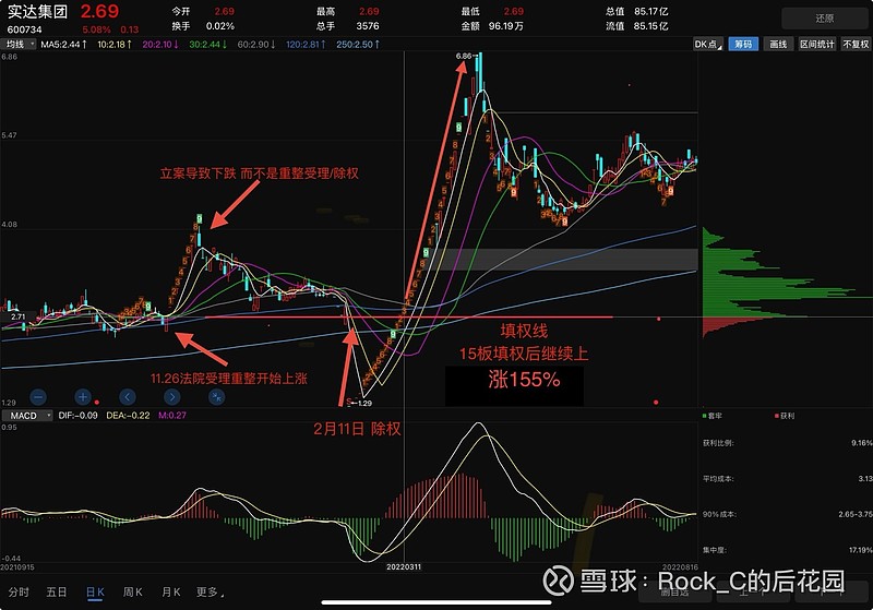 看看实达除权的时间,2月,包括奥瑞德我记得也是2月中旬,很多股都是一月中旬以后开始除权,除权之前也都会提前发公告,至少提前三天告诉会停牌除权,这都是法院公告重整结束以后的事,不知道为啥东易提前两个月开始恐慌!被市场带节奏还来个人传人!……不想除权到时候公告后走就是了,又不是这个月/下个月立马停牌不让你走…真的是…@¥&$?