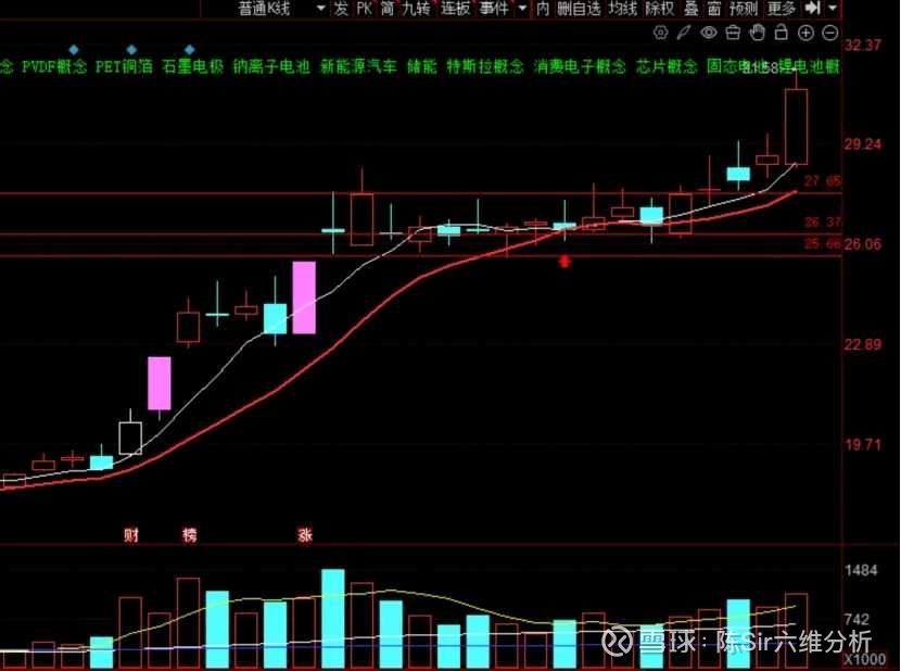 其中基本面,你只需要大概了解一下就可以了,最简的就是上某球、谋公社看一下。像璞泰来,你知道它业绩好、热门题材(固态电池)就足够了。