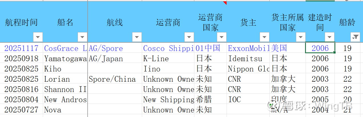 我这里统计了今年7月20日以来TI近500条VLCC的租赁记录,20岁即以上的船只有4次;19岁船3次。