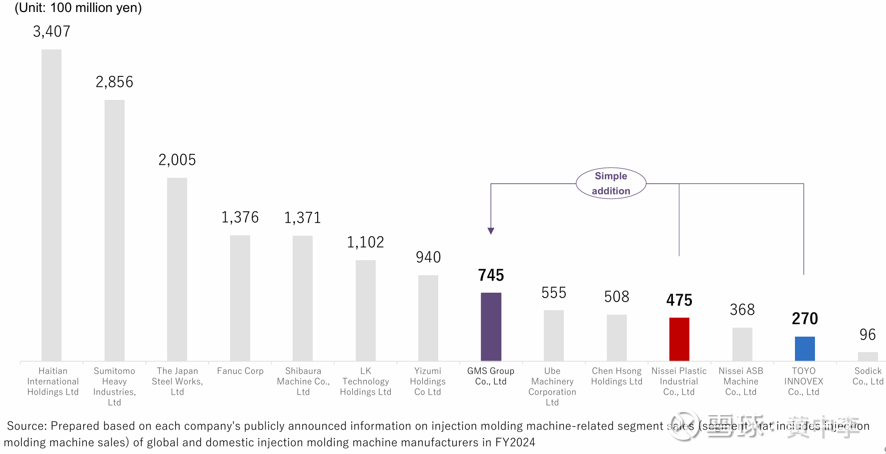 由于2024财年JSW成型机收入669亿日元,约合30.5亿人民币,低于伊之密2024年的收入体量。所以本文第一张图中,JSW在横轴的位置也没画对。