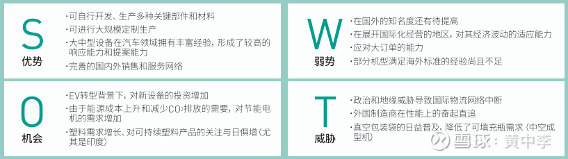 1)对成形机板块,公司自己做了SWOT分析,如下图。
