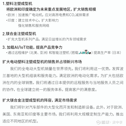 收入的地域分布方面,没有成形机子板块或工业机械板块的拆分,只有全公司的收入地域拆分,2024财年的情况如下。单位为百万日元。