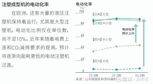 关于注塑机的电动化,JSW认为欧洲还有很多存量的液压注塑机,有较大的电动化率提升空间,如下图所示。