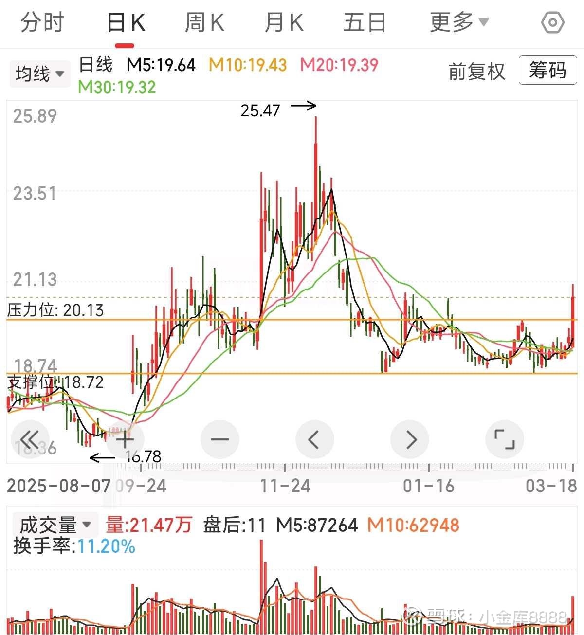 当前股价放量上涨,股价处于5日、10日、20日短期均线上方,短期呈现混沌向上发散的态势,且短期均线收敛在一起,收敛的状态较好,5日均线小幅向上,处于较好的日线反弹结构之中。