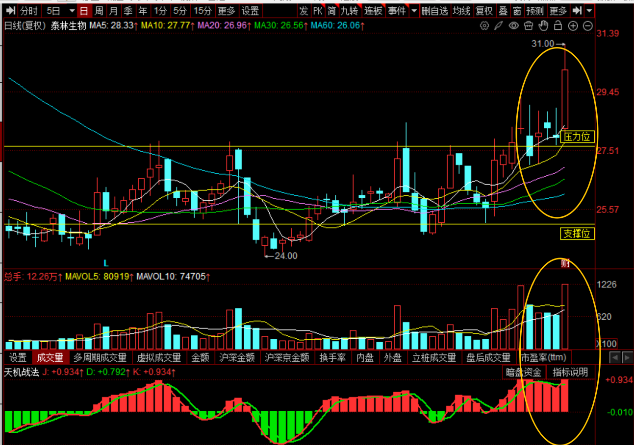 当前股价放量上涨,股价处于5日、10日、20日短期均线上方,短期均线呈现多头向上发散的态势,且短期均线向上发散的状态较好,处于较好的日线反弹结构之中。