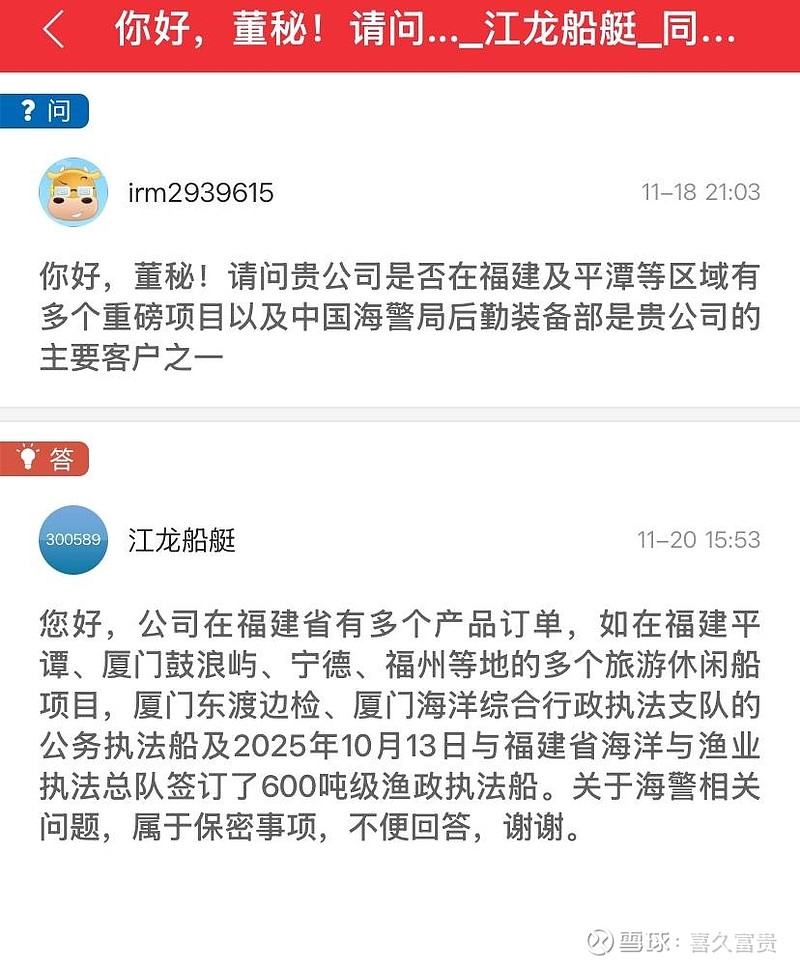 目前来看,船系的话,江龙船艇是启动最早的,中船防务是中船系的龙头,但是江龙的分时又会跟一些中船,属于20cm伴生了,更有弹性,久之洋才是套利,不如江龙。逻辑大概就是抢滩登陆的逻辑,和本子的关系不太影响,冲突加剧也是利好船系,缓和也不影响统一必须得登陆宝岛。大概就是这么个关系。而且中船系还有逆大盘的先例。这次的事件也都是海上行动,正好填补了没炒过船的空档,成飞和长城都炒过,空间不大了。不要以一天的涨跌论英雄,记住这句话$江龙船艇(SZ300589)$ $中船防务(SH600685)$