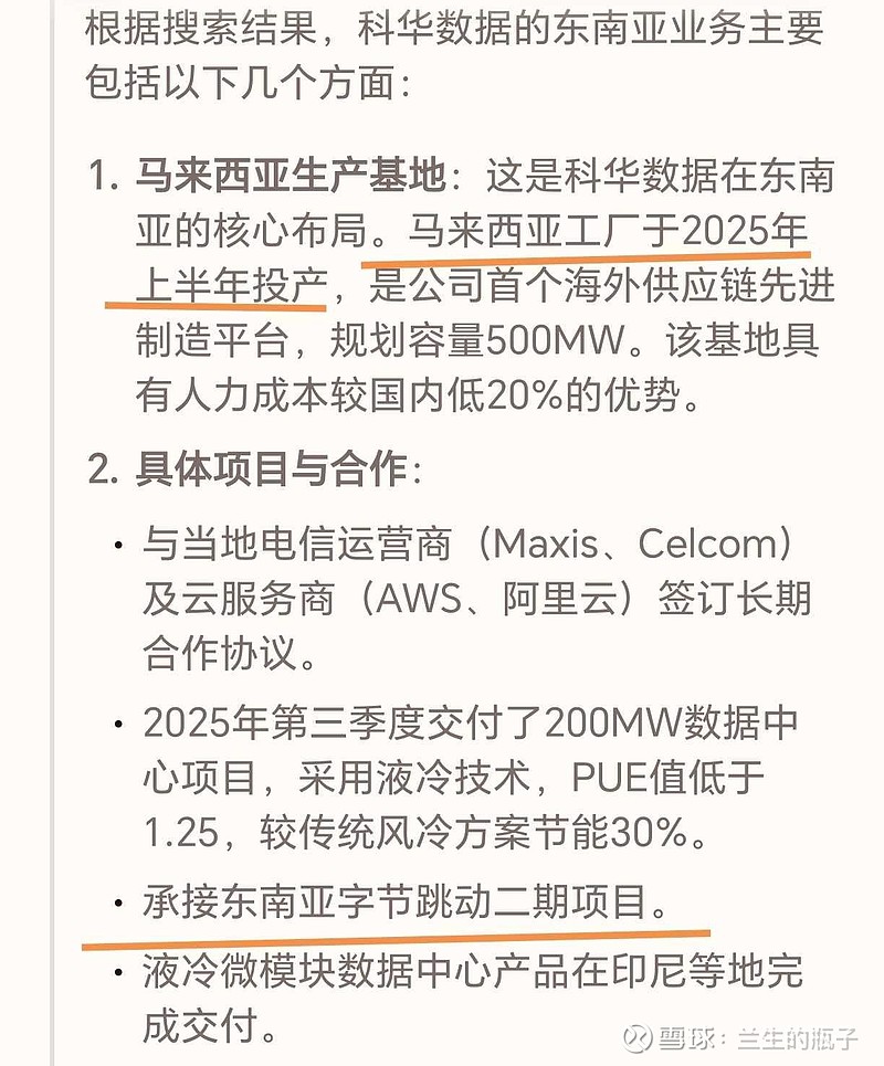 $科华数据(SZ002335)$ $中恒电气(SZ002364)$ 东南亚有业务的。已与当地电信运营商(如Maxis、Celcom)及云服务商(AWS、阿里云)签订长期合作协议。同时,承接了东南亚字节跳动的二期项目。