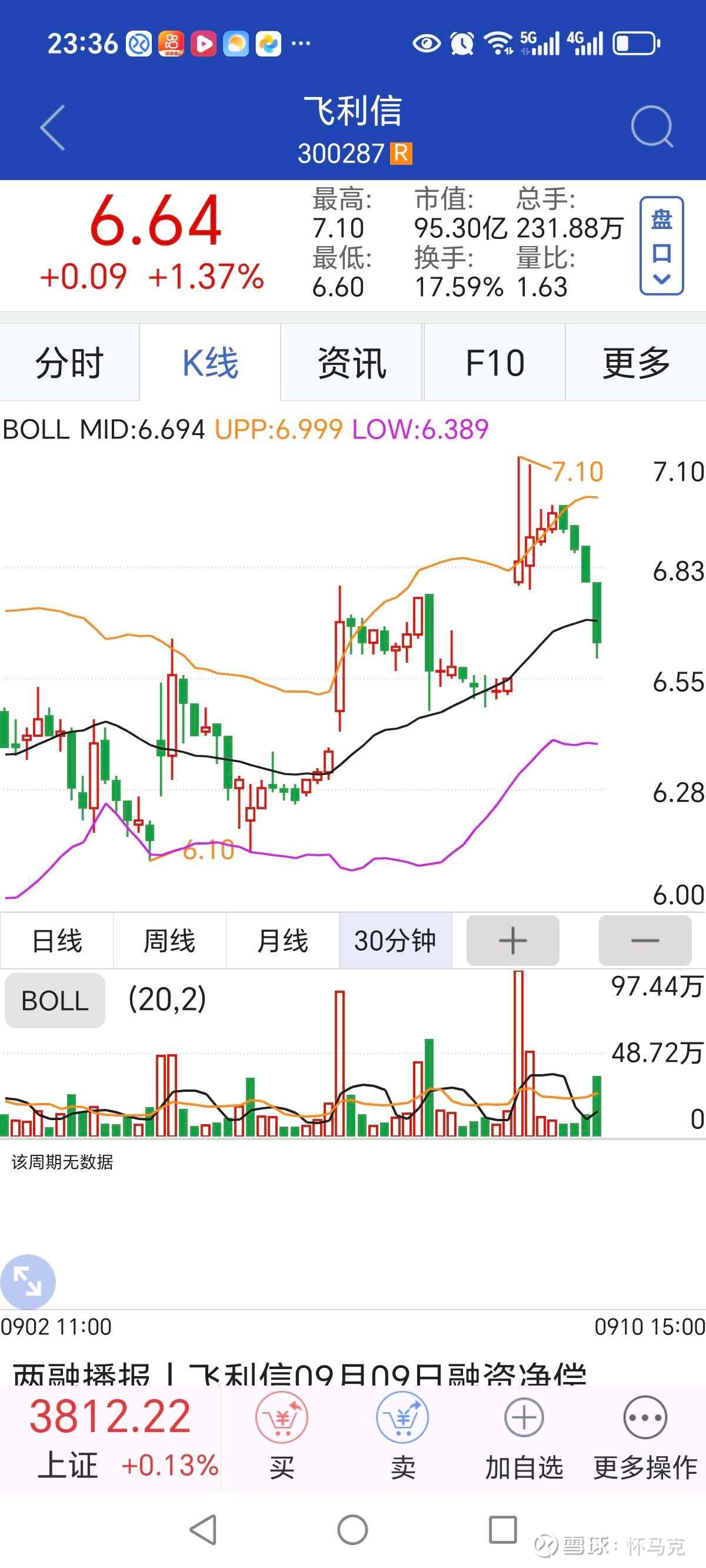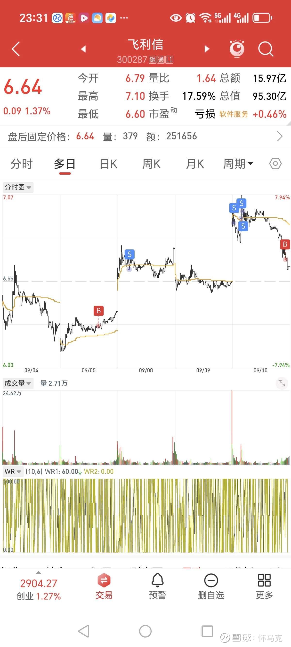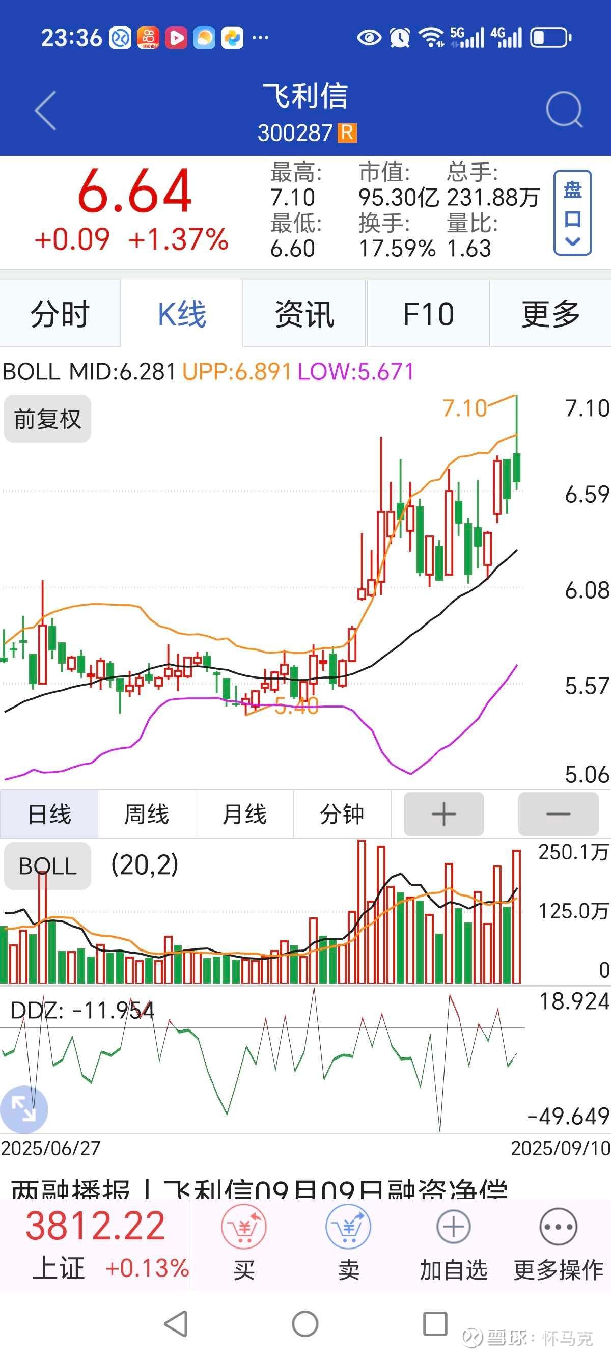 今日走势:9月10日,飞利信开盘价为6.79元,最高成交价为7.10元,最低成交价为6.60元,最终收盘价为6.64元,较前一日上涨1.3740%。