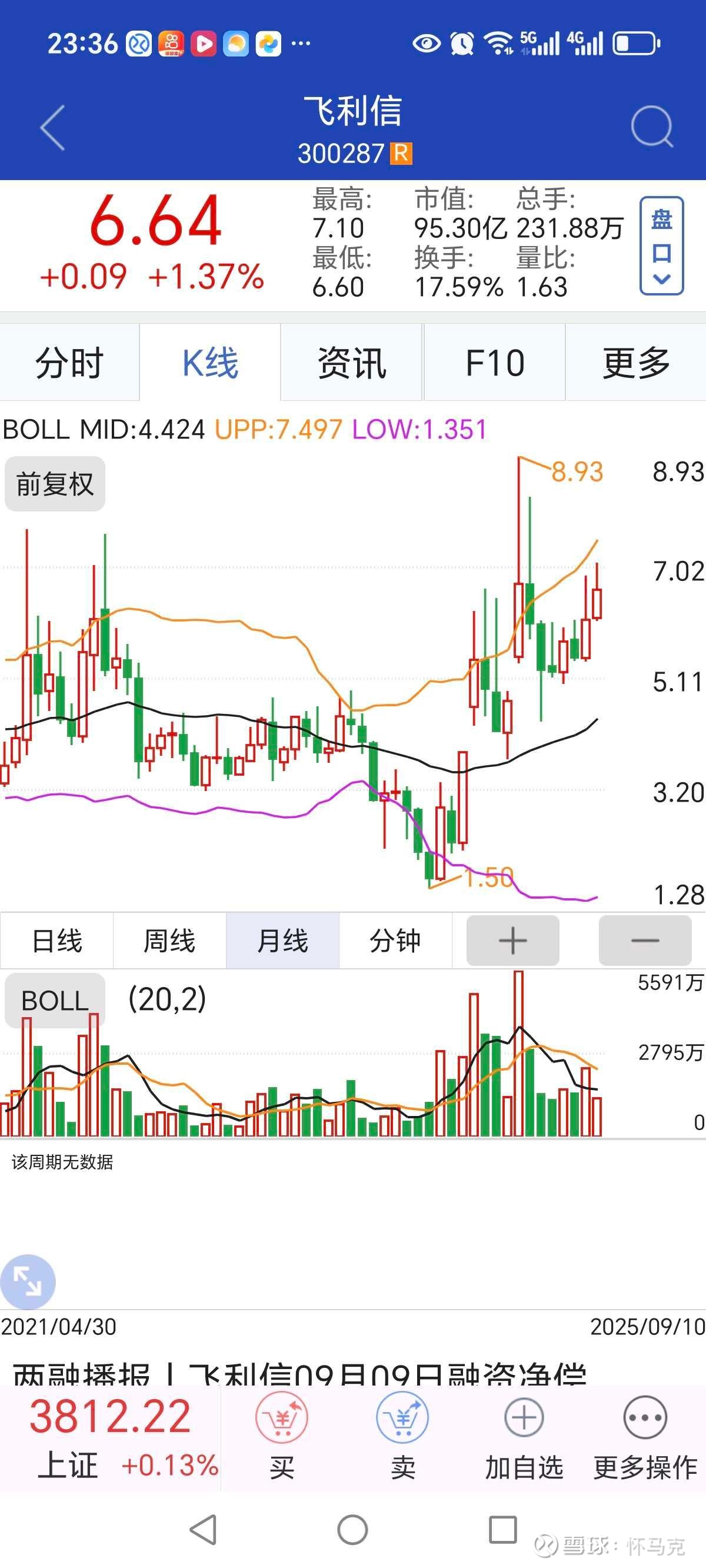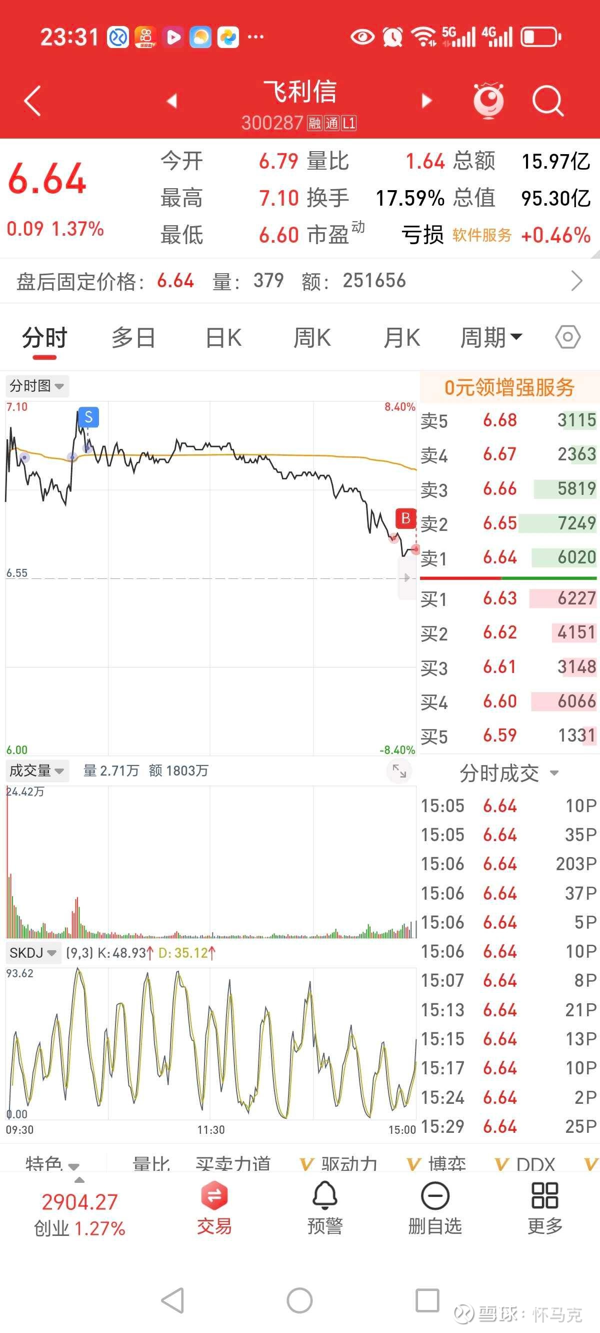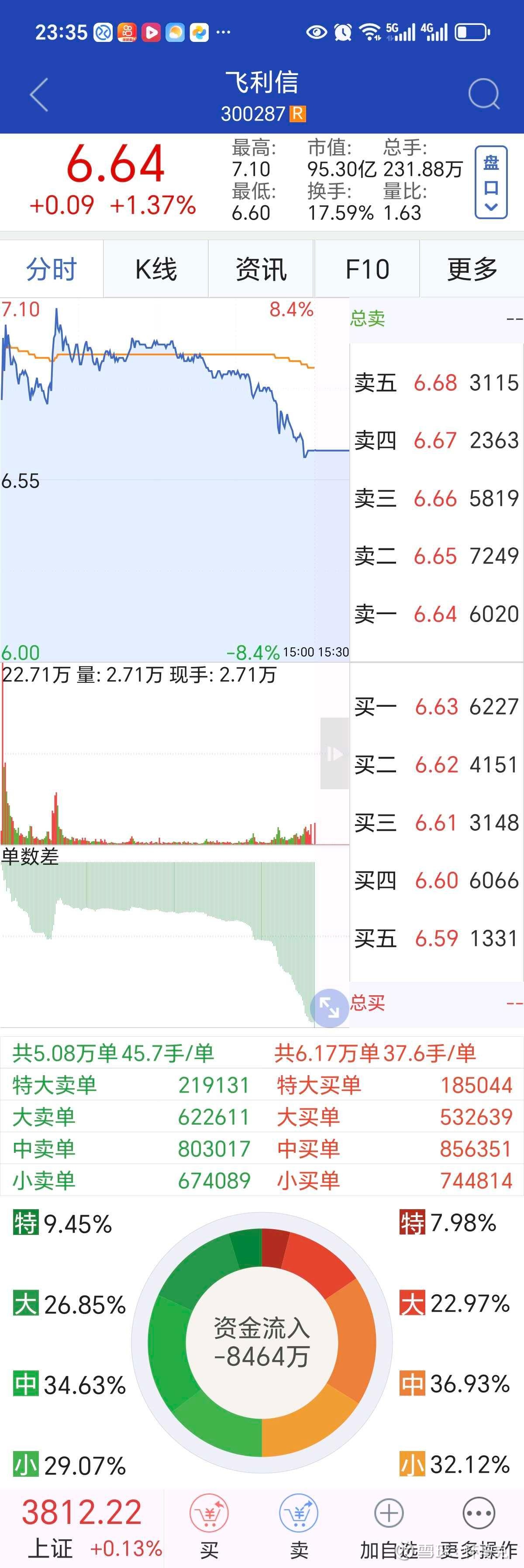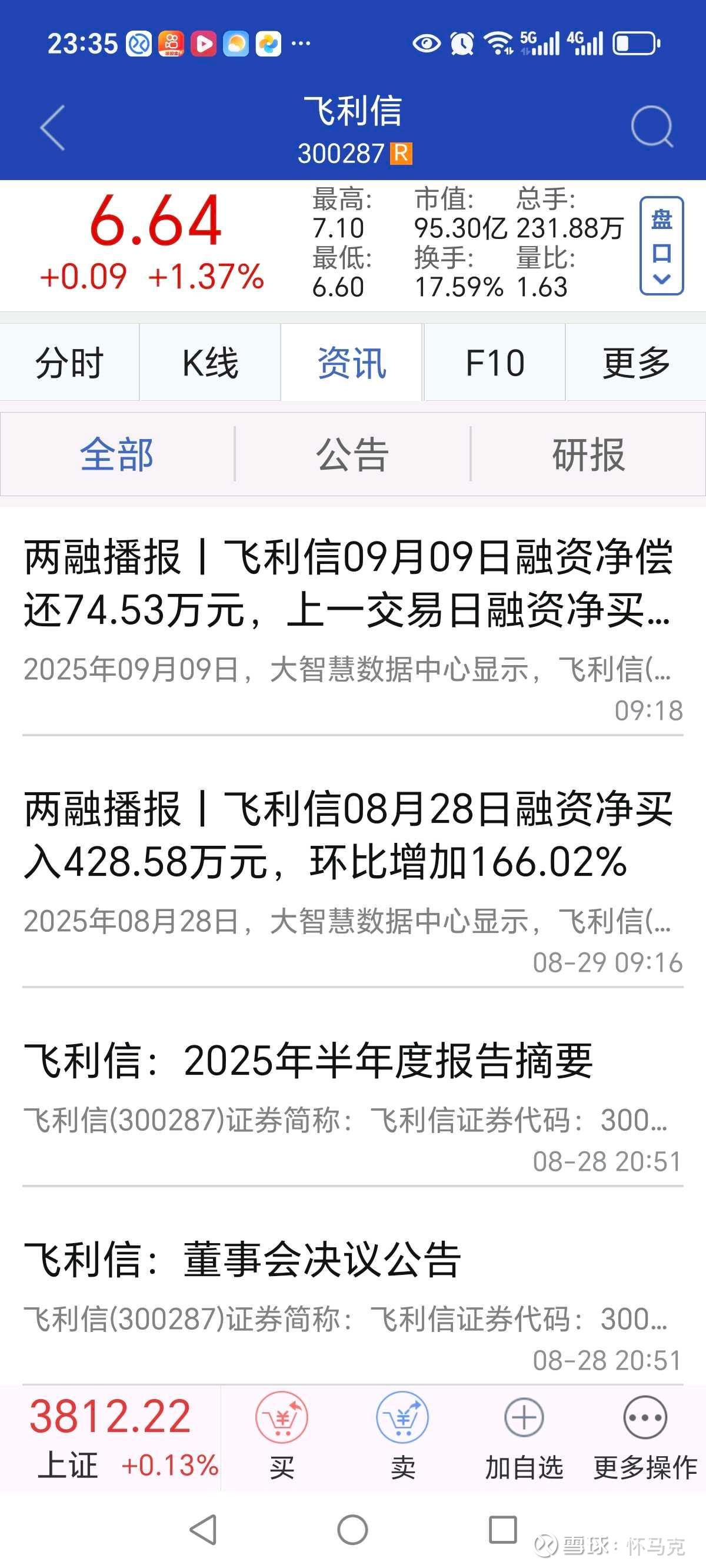 今日走势:9月10日,飞利信开盘价为6.79元,最高成交价为7.10元,最低成交价为6.60元,最终收盘价为6.64元,较前一日上涨1.3740%。