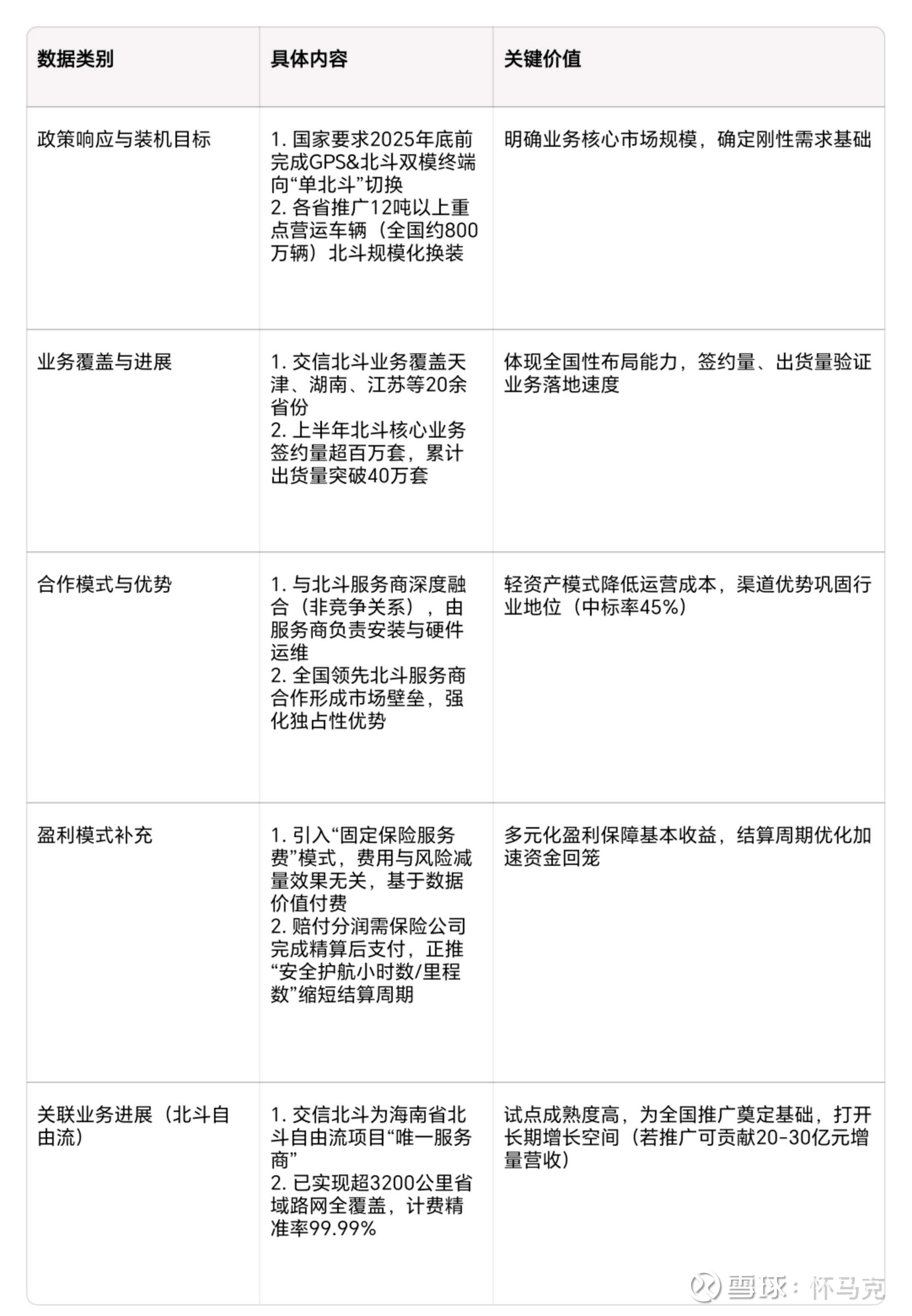1. 政策多场景渗透:国联民生证券测算“客运、危险品运输车辆换装可再扩300亿元市场”,财联社提及“北斗在智慧港口、物流园区试点启动”,公司依托交信集团场景资源与战投技术支持,模式具备跨场景复制潜力。