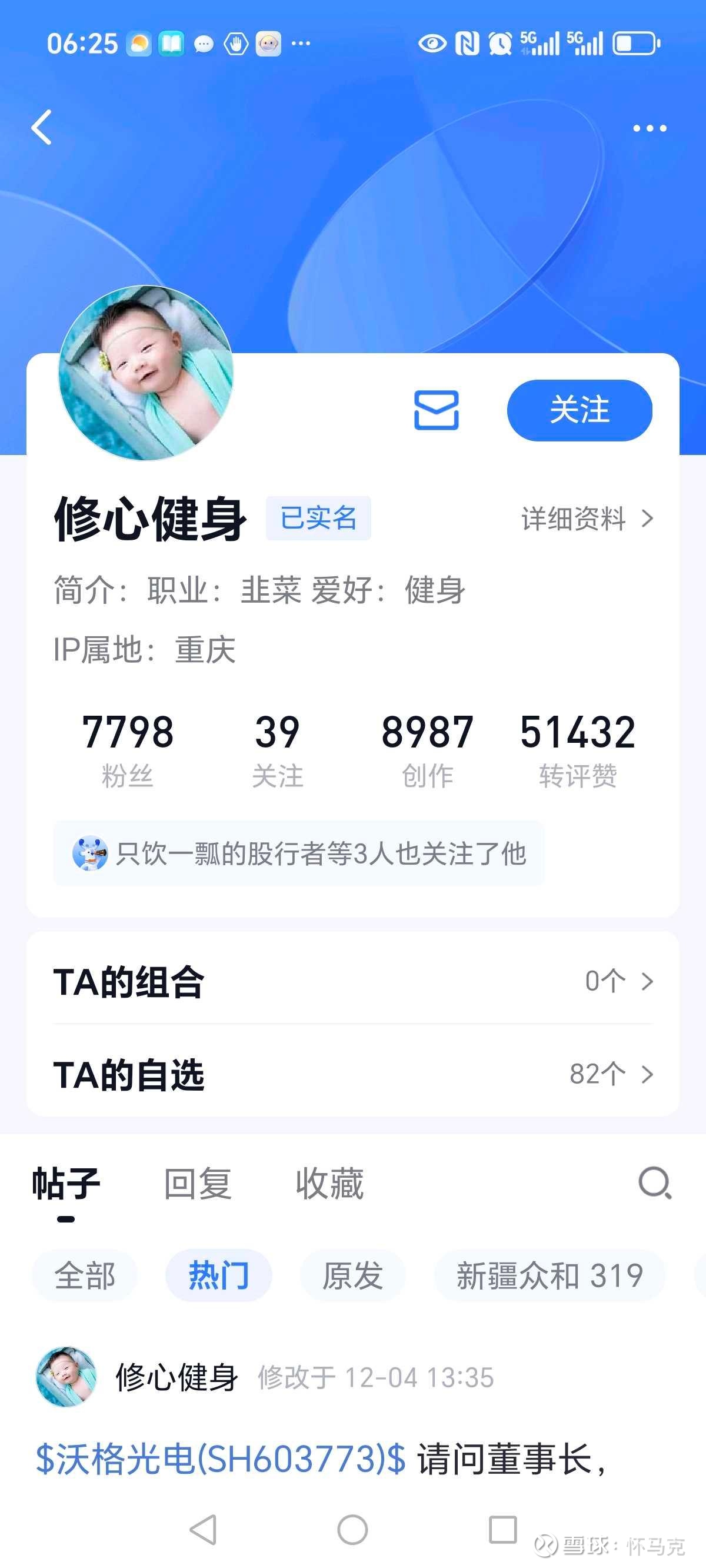 面对@怀马克基于公司基本面的深度风险预警网页链接,他既没有“修心”所要求的理性思辨,也没有“健身”所象征的抗压底气,反而抛出“马上过年了,让自己和家人过个好年,别让人问候”的模糊威胁。这种话术,毫无对投资逻辑的探讨,只剩对不同声音的情绪压制;没有对粉丝负责的专业态度,只有对争议焦点的刻意回避。昵称里的“修心”,成了道德绑架的外衣;所谓的“健身”,更像是对异见者的言语施压,与其所标榜的价值内核完全相悖。