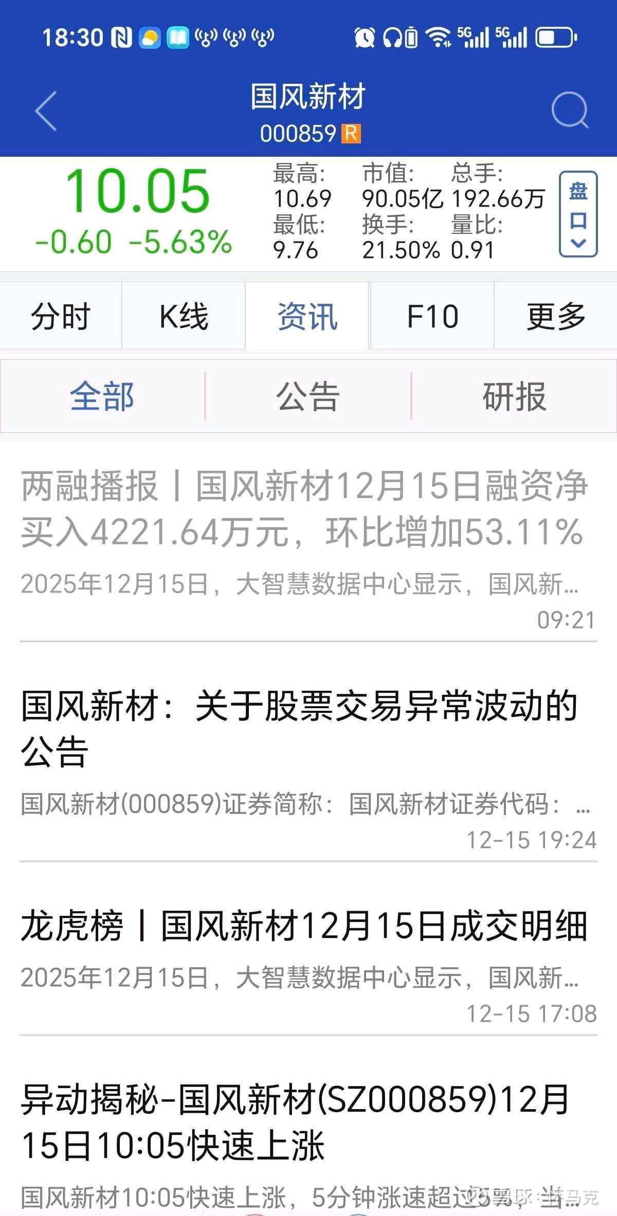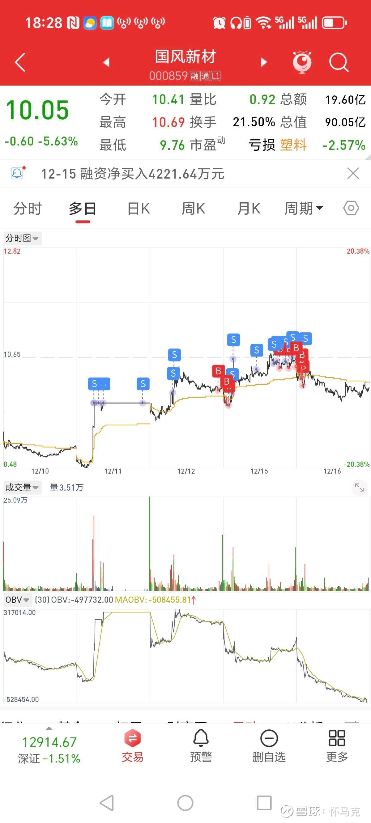 国风新材早盘低位买入加仓,股价冲高后完成全仓做T操作;在高盟新材低位加仓,却因午后未盯盘错失做T时机。核心原则明确:即便午后盯盘,也绝不会对国风新材进行加仓操作,后续仅围绕国风新材现有基本仓展开博弈。两只标的当日盘面分化显著,国风新材早盘冲高后快速跳水,高换手率为早盘做T提供流动性;高盟新材早盘下探后午后强势反弹,走出V型走势,二者不同的波动特征决定了差异化的操作应对思路。