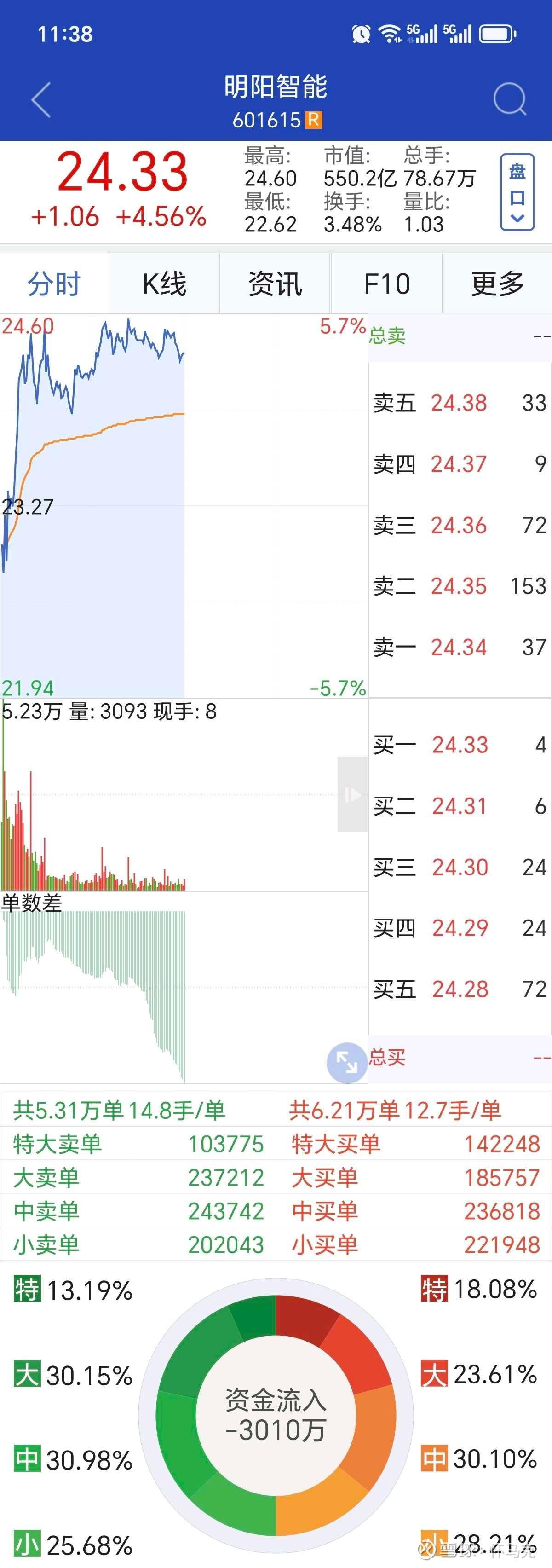 盘口陷阱:开盘后在23元位置连续出现3184手、3655手大单托盘,看似支撑强劲,实则为诱多信号;午盘前资金小幅净流出-3010万元,特大买单略多于卖单却未能推动股价再创新高,暴露机构边拉边撤的意图。