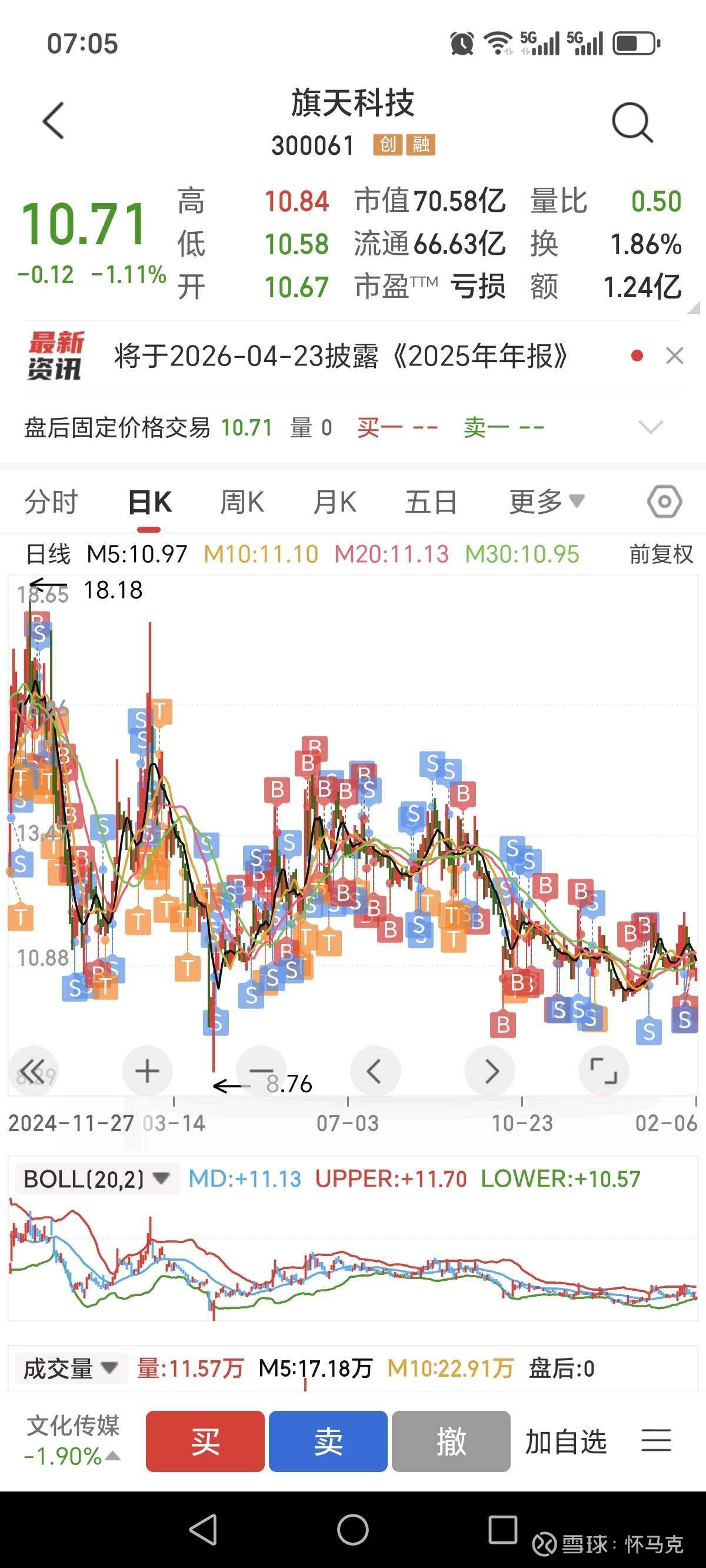 旗天科技是A股资本腾挪极致标的,自带妖股基因,为唯一完成“IPO主业剥离→大股东买回→赴港上市+港股长牛→A股转型题材炒作”全链条闭环的公司,资本运作手法堪称教科书级。公司近期处于10.5-11.2元窄幅弱势箱体震荡,2月6日回调后量能持续萎缩,资金面与技术面无实质性改善,核心受业绩预亏、财务高承压拖累,呈现主力流出、散户接盘的弱势特征。